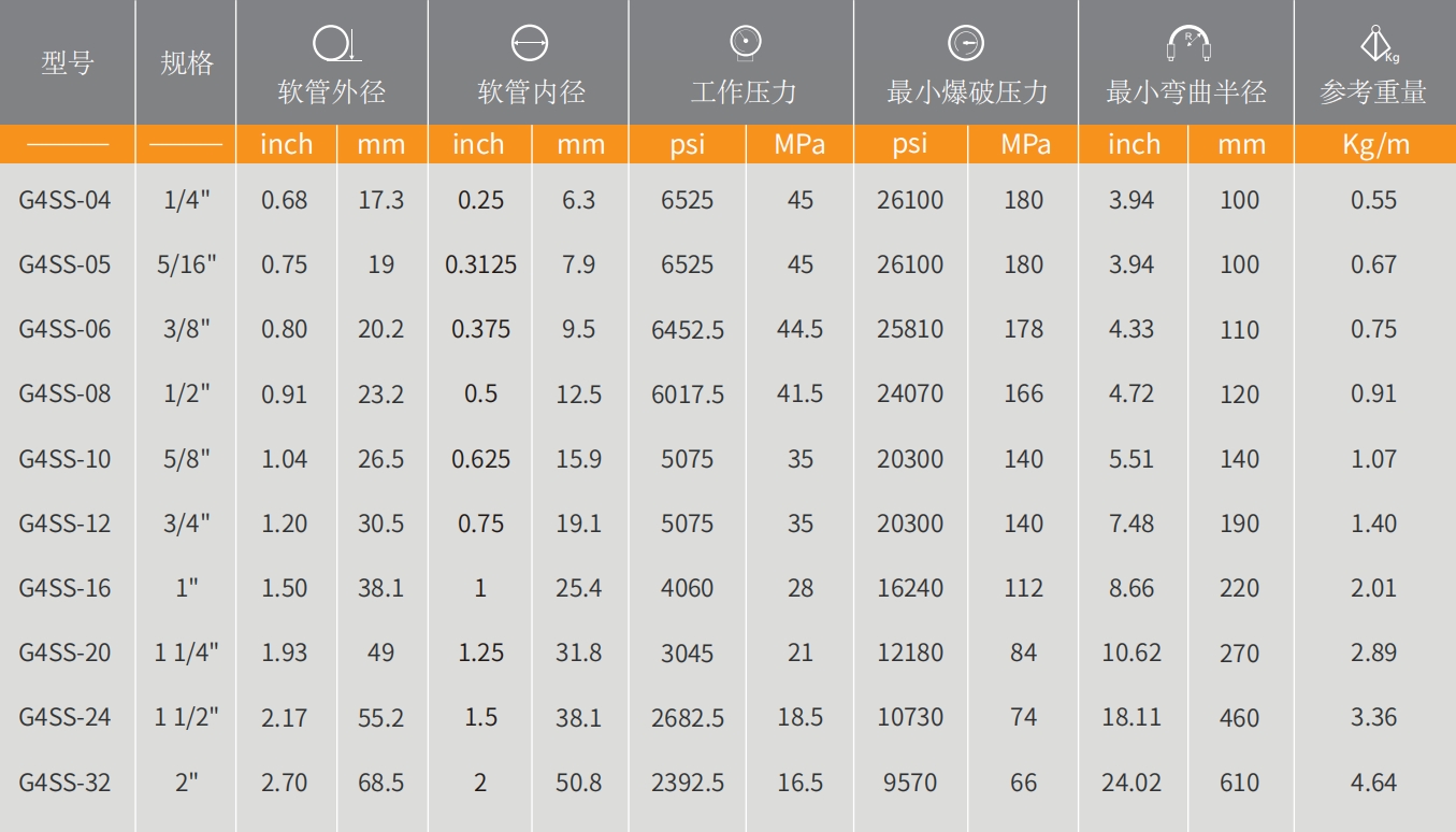 4层钢丝超柔纠葛管 G4SS 系列